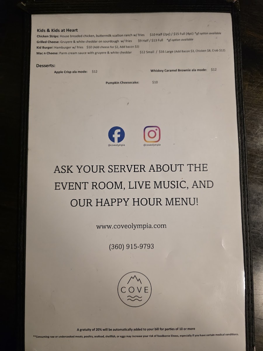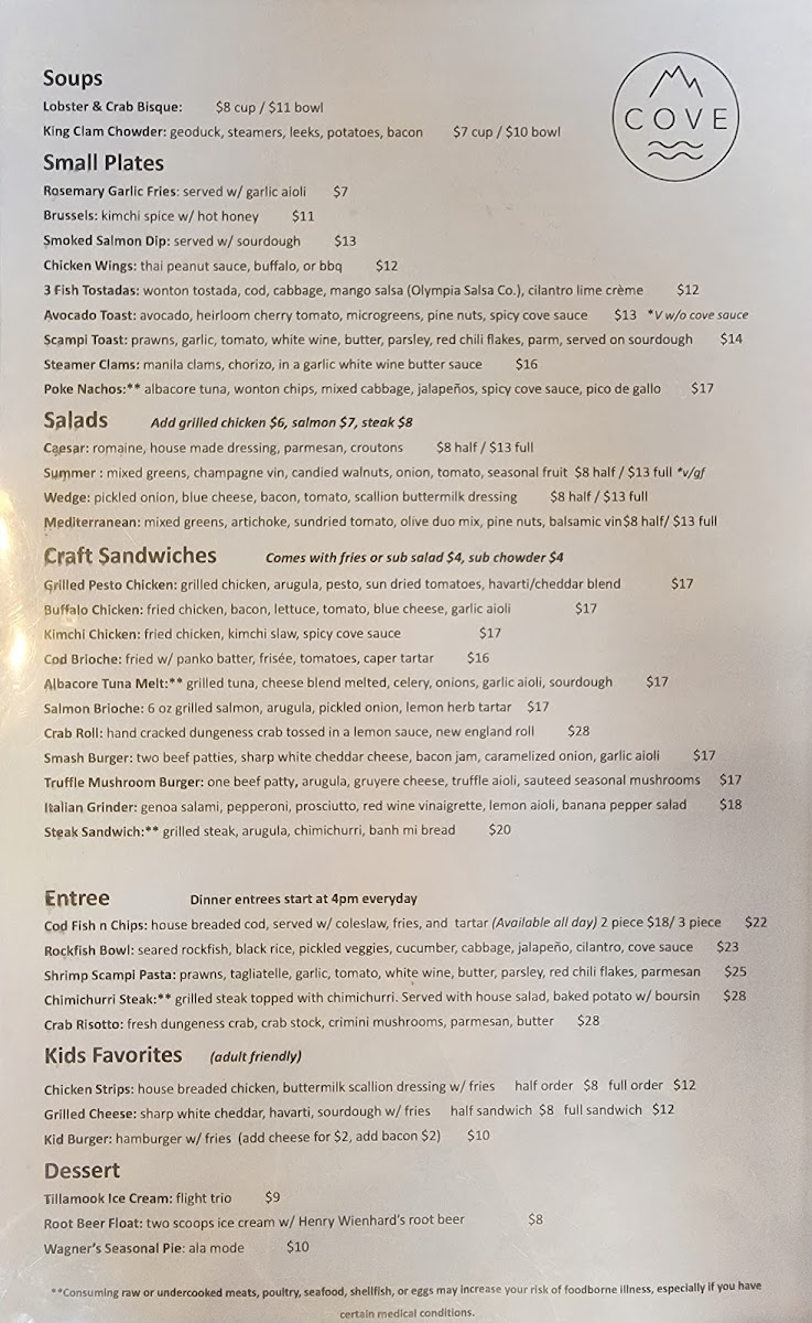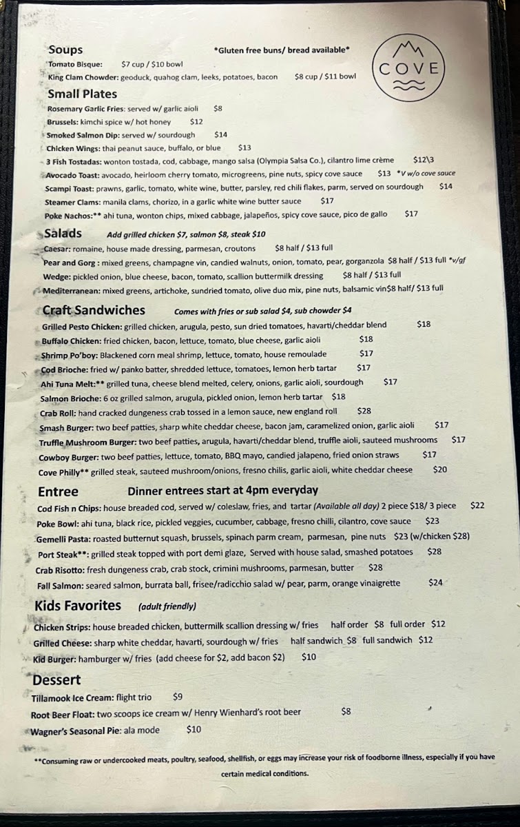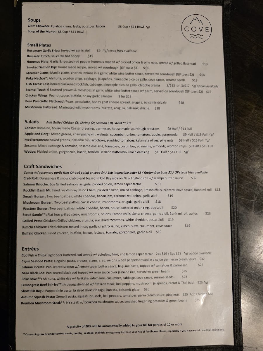 The menu at COVE offers a laid-back yet thoughtfully crafted selection that complements its inviting lounge atmosphere. You’ll find a balanced mix of comforting small plates and satisfying main dishes that work well for casual dinners or catching a game with friends.
